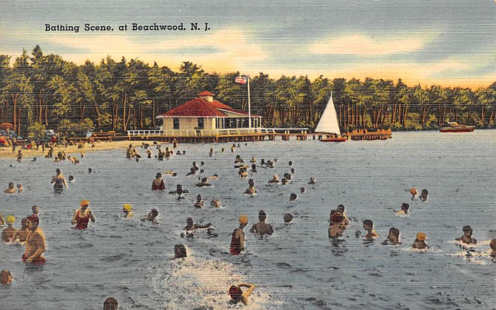 Beachwood New Jersey Bathing Scene, Color Linen Vintage Postcard U12560
