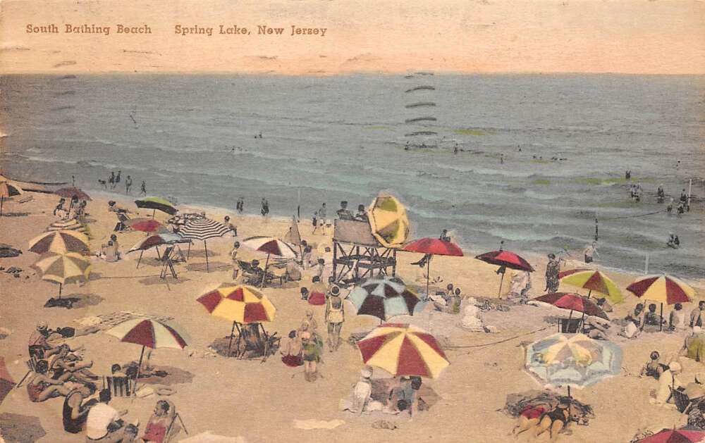 Spring Lake New Jersey South Bathing Beach, Hand Colored Vintage Postcard U12562