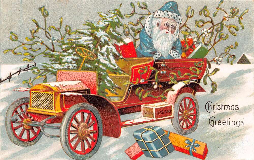 Christmas Greetings Santa Claus in Auto Blue Robe Vintage Postcard AA109888
