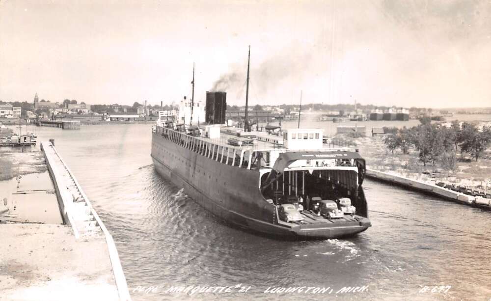 Ludington Michigan Pere Marquette Car Ferry Real Photo Vintage Postcard AA71738