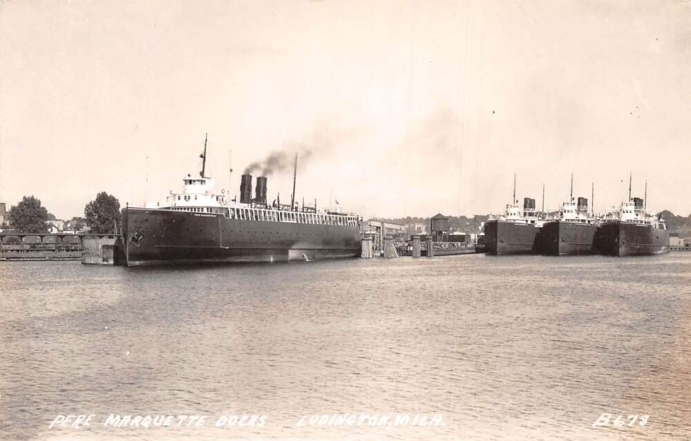 Ludington Michigan Pere Marquette Car Ferry and Docks Real Photo PC AA71739