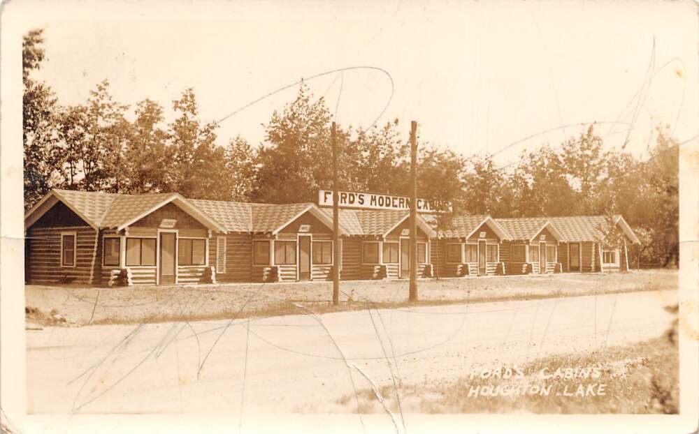 Houghton Lake Michigan Ford’s Cabins Real Photo Vintage Postcard AA71741