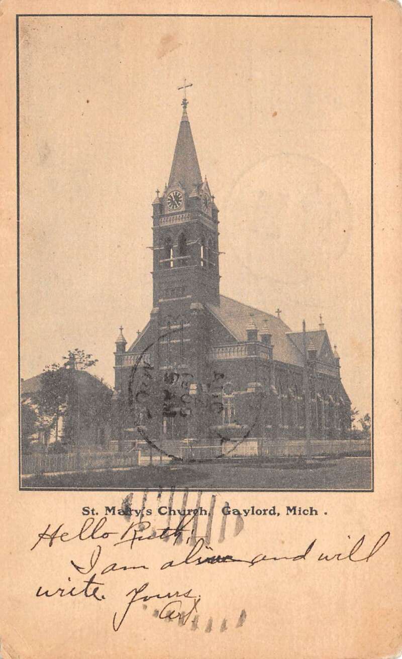 Gaylord Michigan St Marys Church Vintage Postcard AA71751