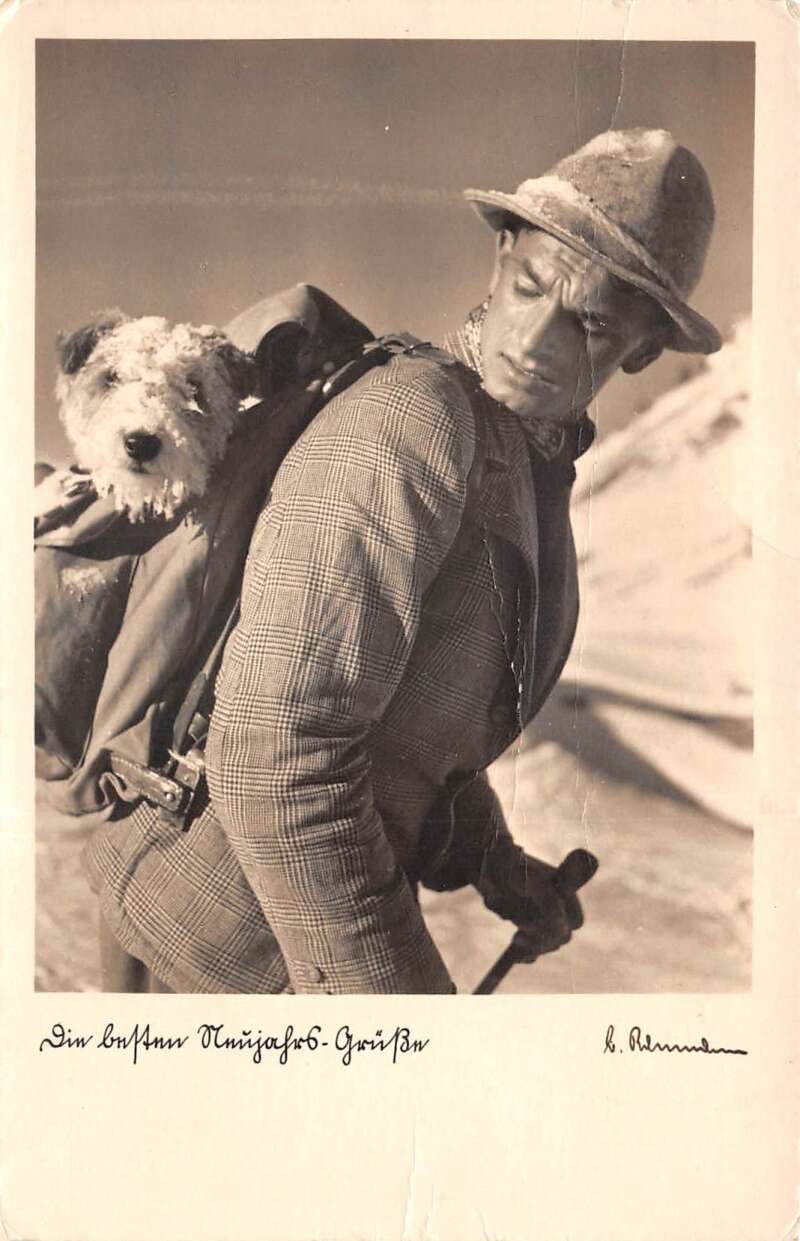 Mountain Climber with Dog Real Photo Vintage Postcard AA71756