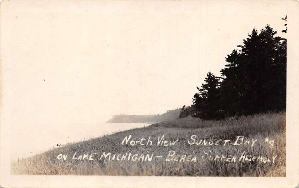 Sunset Bay Michigan Berea Summer Assembly North View Real Photo Postcard AA71757