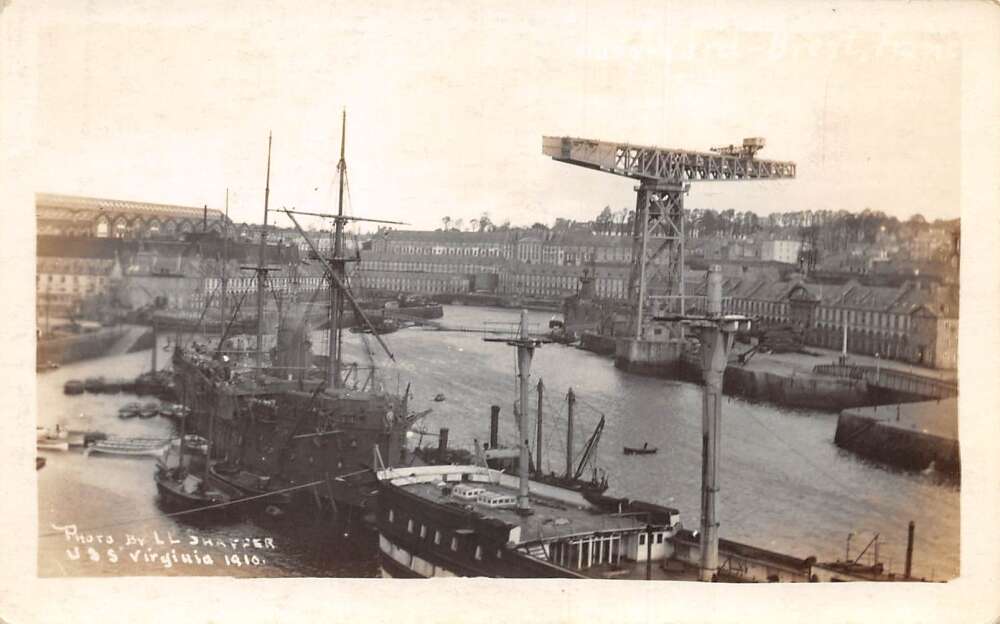 Brest France USS Virginia 1910 in Port Real Photo Vintage Postcard AA110006