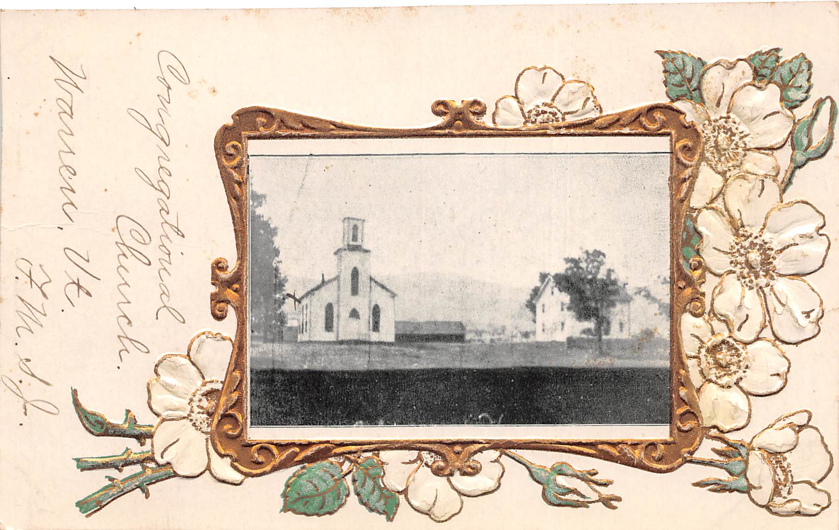 Warren Vermont Congregational Church, Flower Border, Vintage Postcard U12285