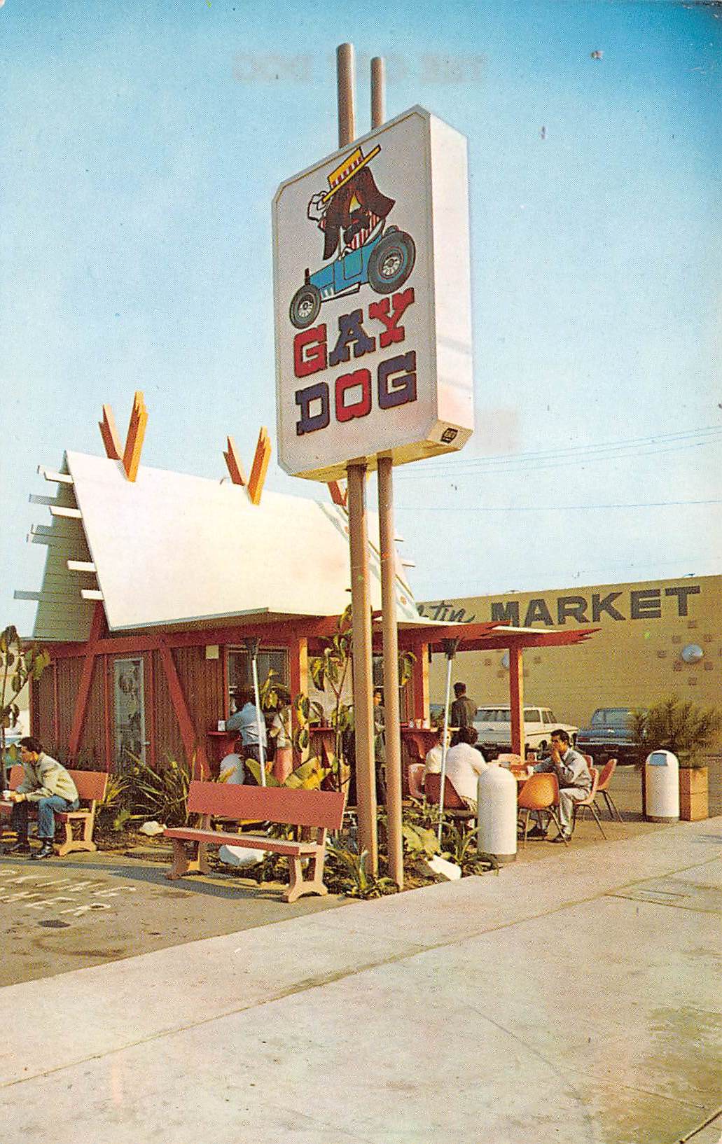 Downey California The Gay Dog Restaurant, Photochrome Vintage Postcard U12286