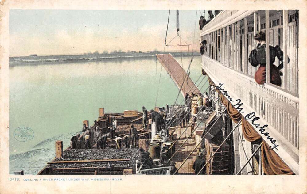Mississippi River Coaling a Steamer Riverboat Detroit Vintage Postcard AA106464
