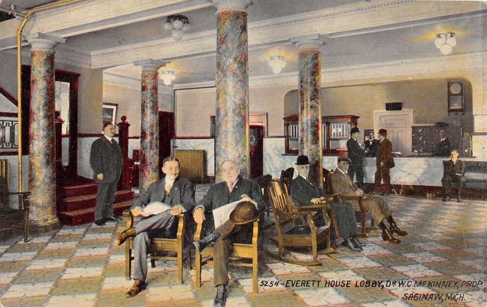 Saginaw Michigan Everett House Lobby Vintage Postcard AA72675