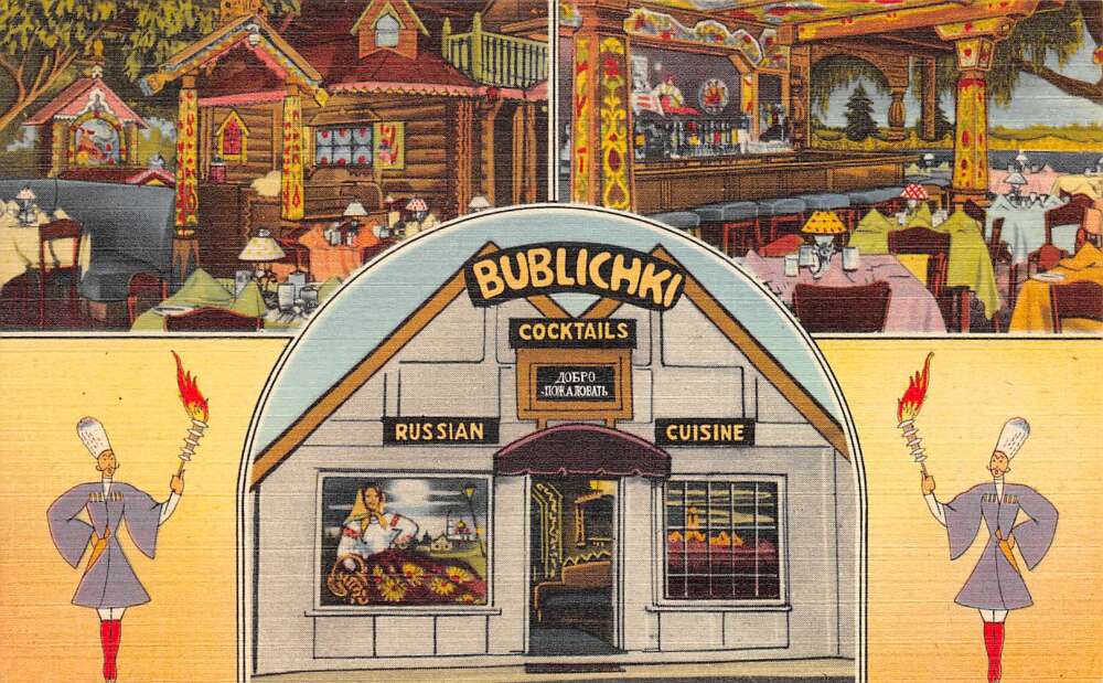 Hollywood California Bublichki Russian Cafe Restaurant Vintage Postcard AA72680