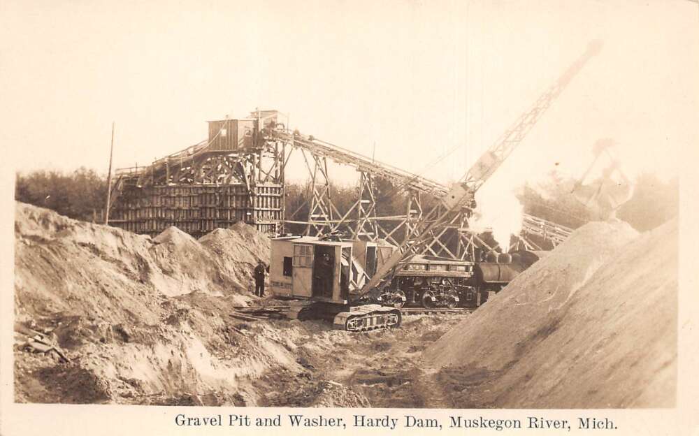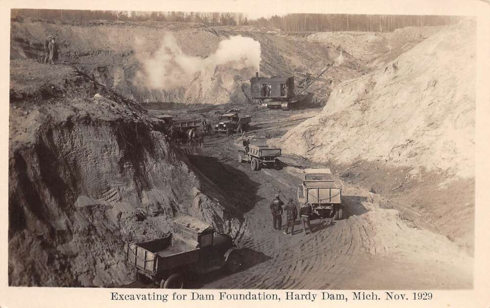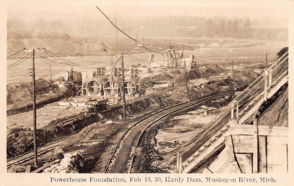Muskegon River Michigan Hardy Dam Excavating Foundation Real Photo PC AA71966